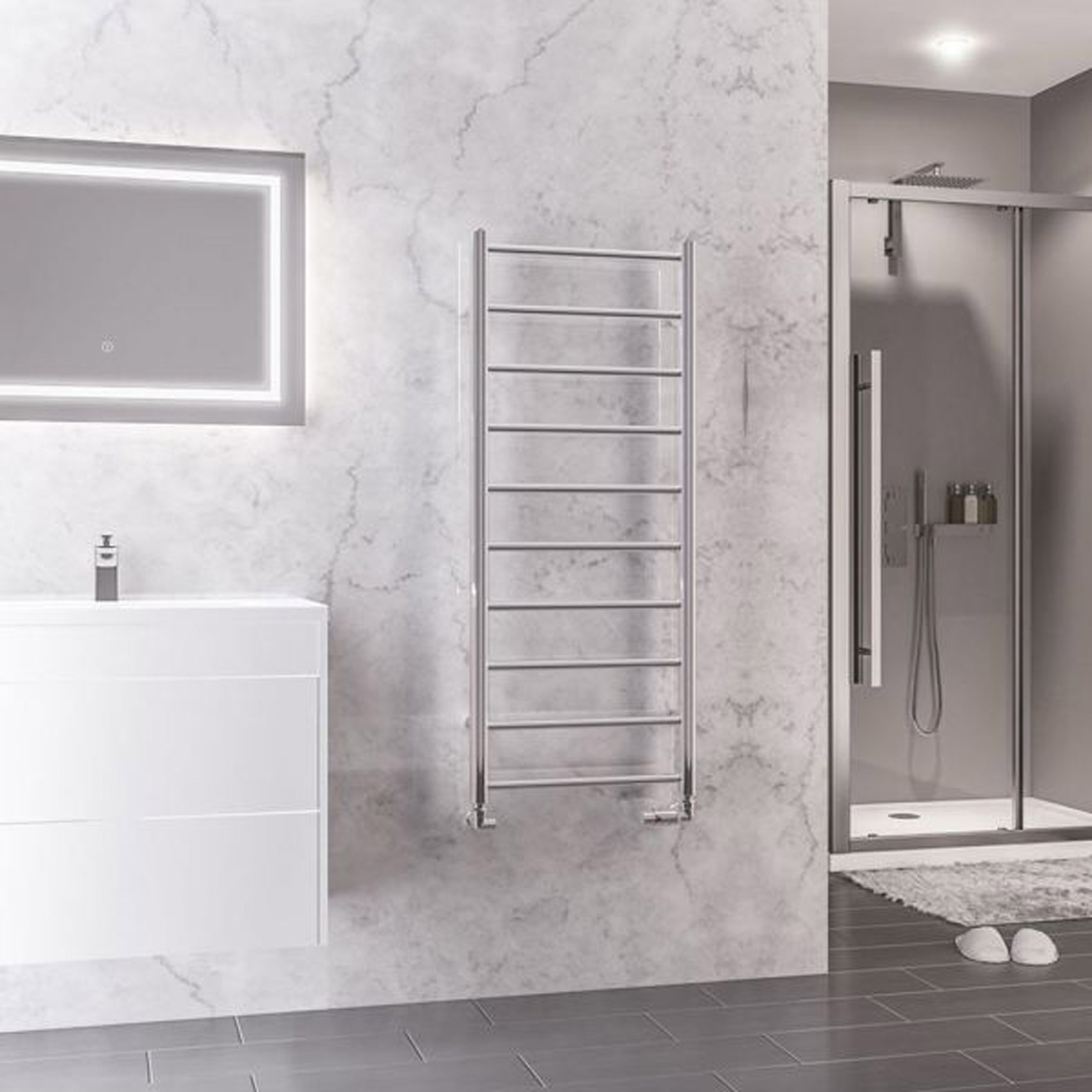 Tuscan Round Electric Towel Rail, 1200 x 500mm in Chrome