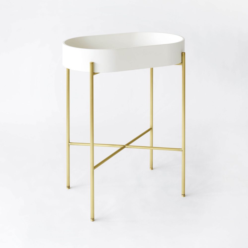 Ex-T Stand Oval Basin 700mm In Matt White With Brushed Brass Stand