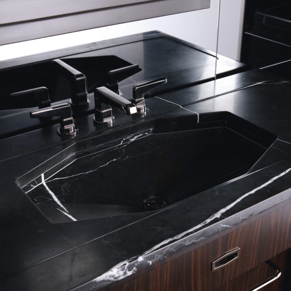 Freestanding Breccia Anthracite Solid Marble Basin