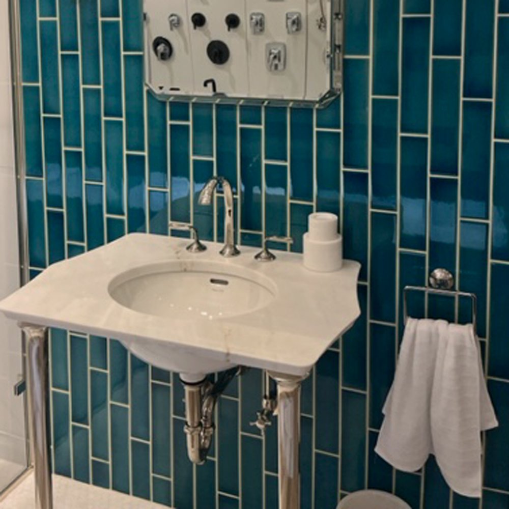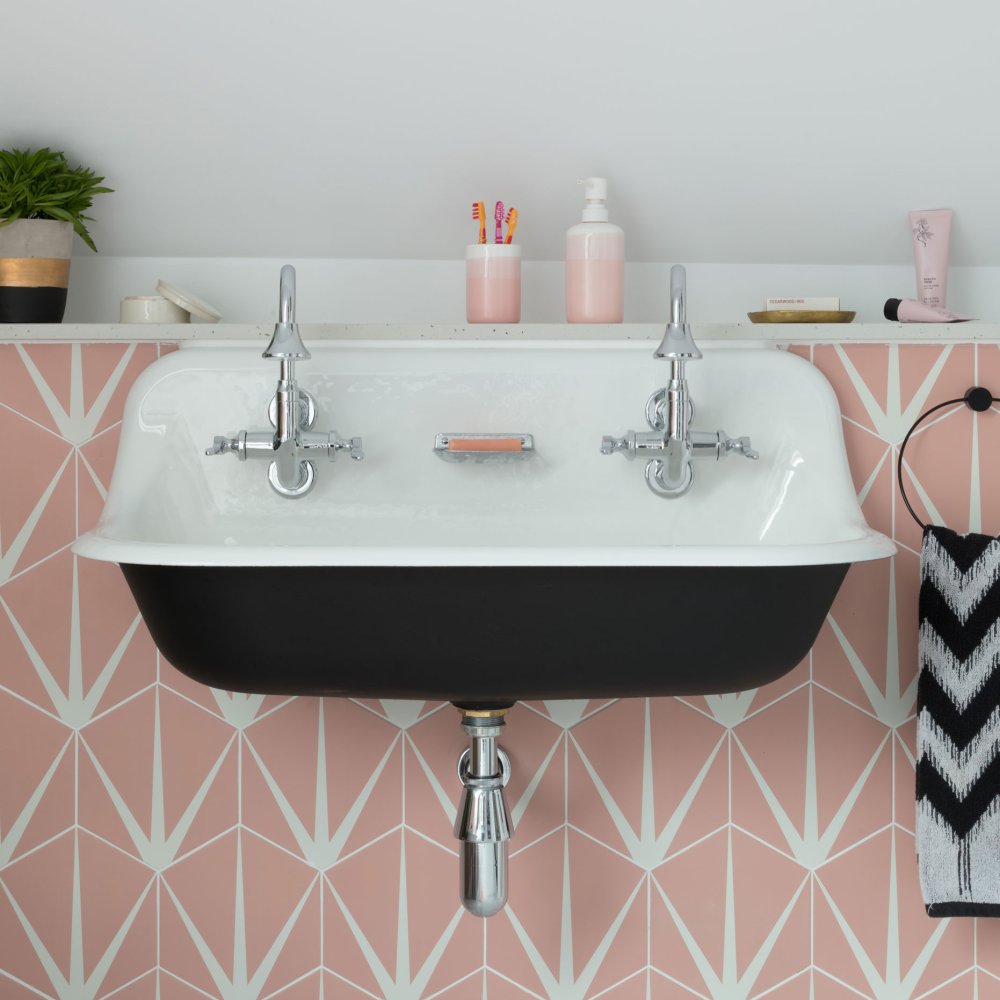 Herbeau Valse Cloakroom set in Moustier Polychrome with Old Gold Weathered Brass fittings