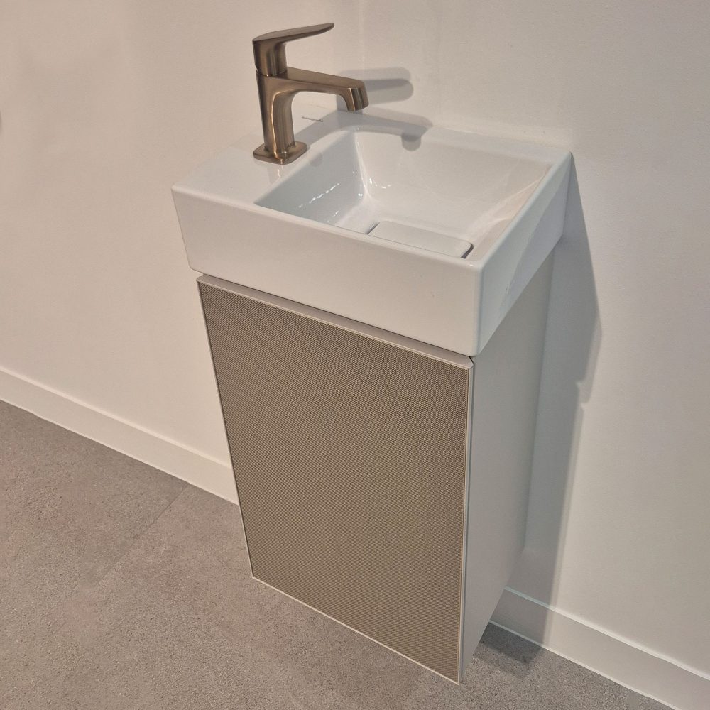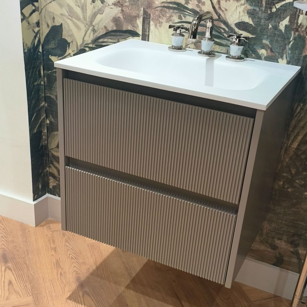 Scanalato Reeded 2 Drawer Unit, Soft Taupe and Beyondstone Basin