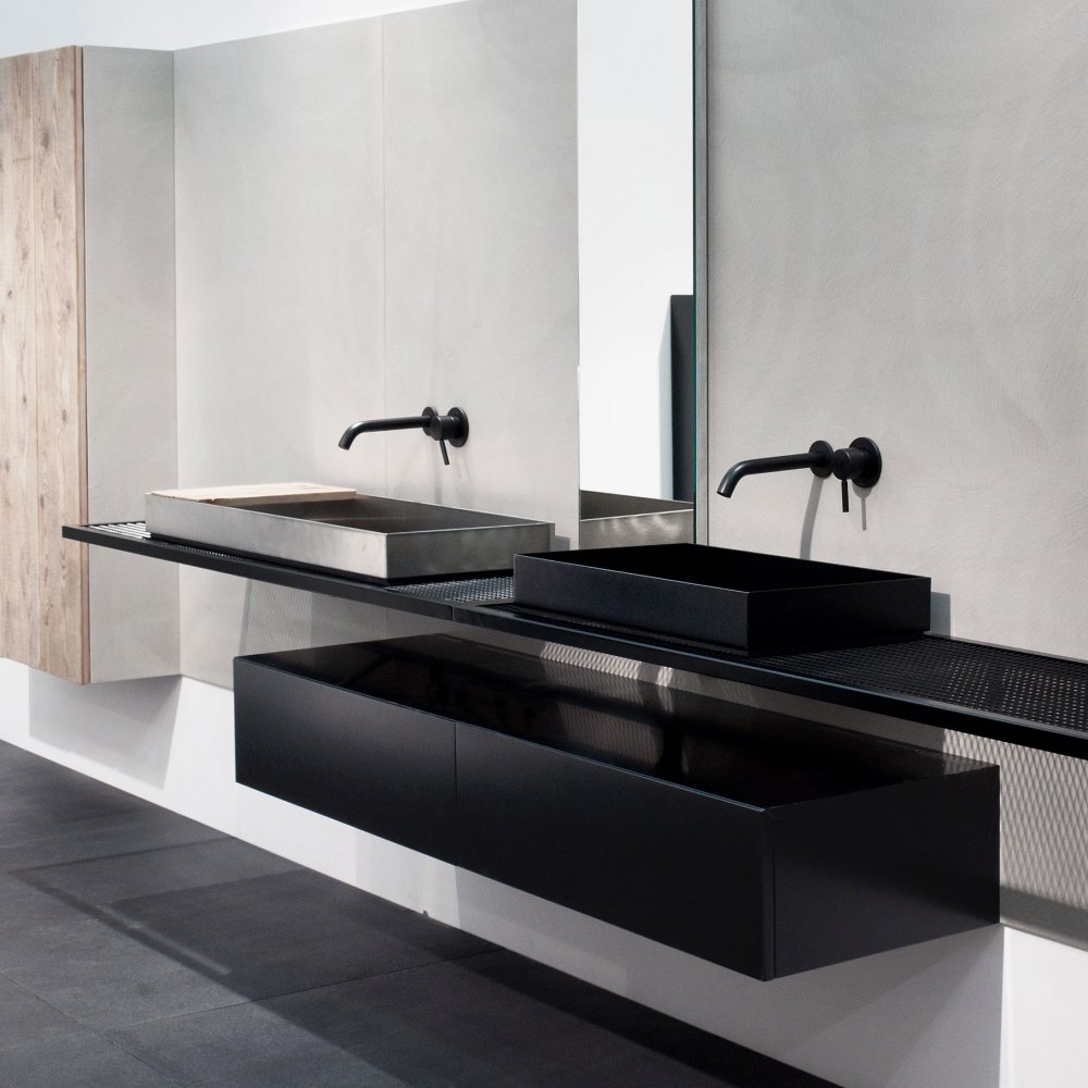- It is available with both countertop and undermounted basins, but also placed under the tops of other series
