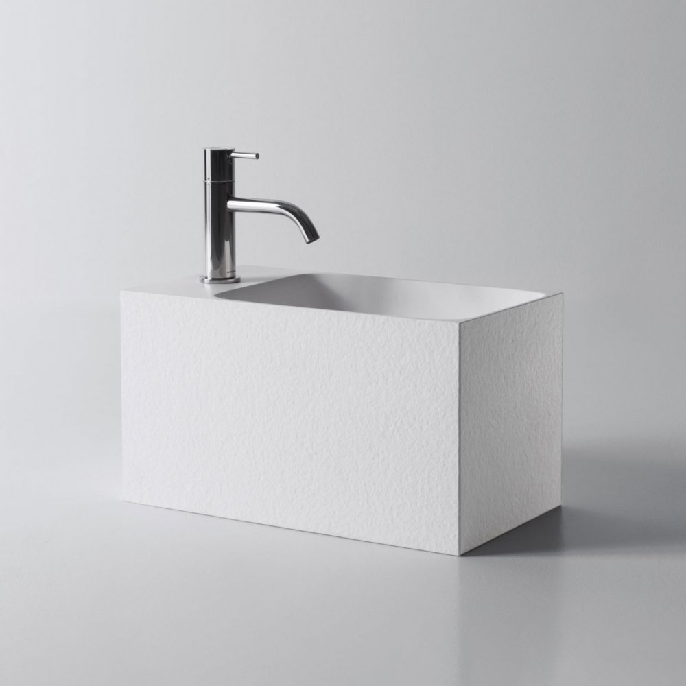 An elongated, minimalist design with a softly sculpted offset bowl and an extended vanity area, available in left or right orientation. Lars is suitable for wall or surface mounting and designed in line with ADA guidelines