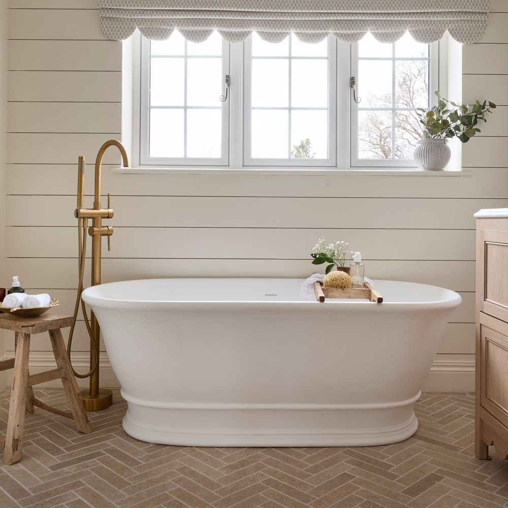 - Freestanding bath that can be placed without showing pipes
