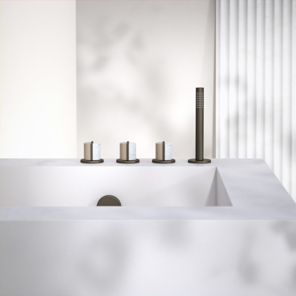 With over 800 variations and counting to choose from colours include, Pink Sand, Almost Harvest, Riverbank and Bleached Deck while there are several marble options such as Aqua Marine, Grey Moon, Beige Ecru and White Carrara. Several metal materials can also be specified, from chrome to warm brass or dark bronze.